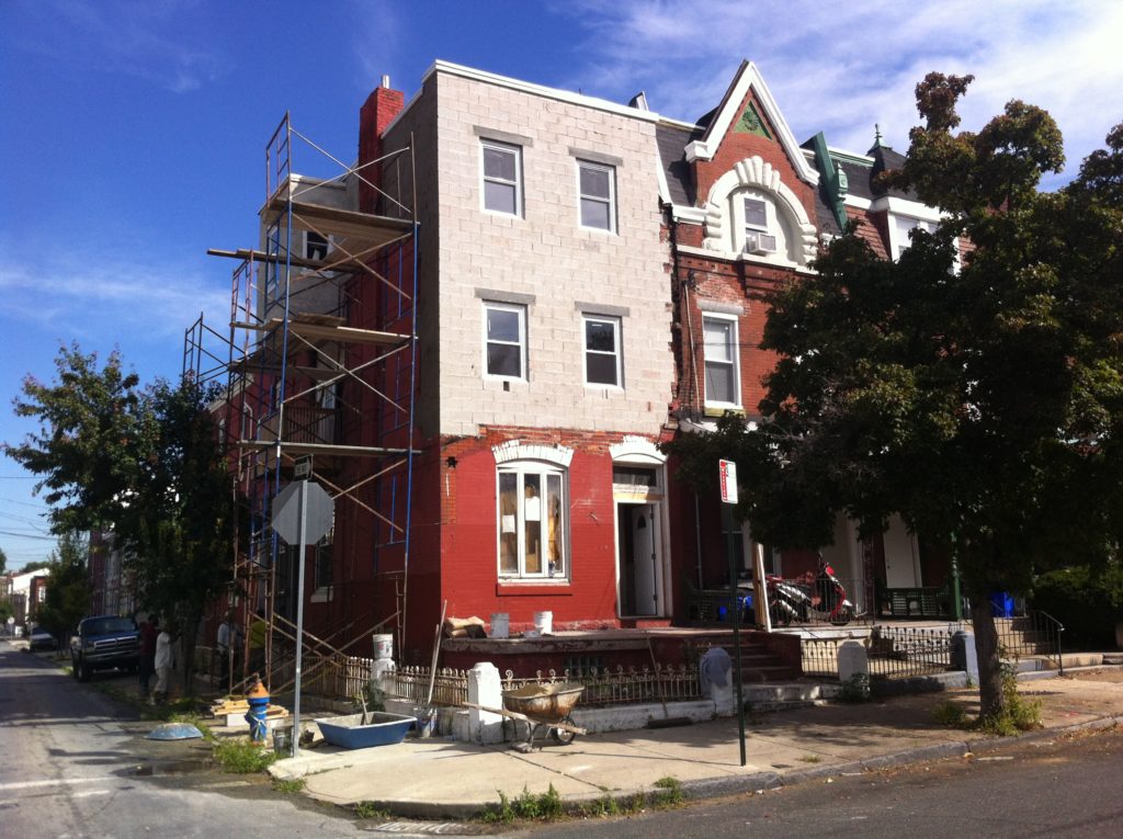 There is plenty of redevelopment happening in Powelton Village and West Powelton. So when passed by a strip of four apparently vacant homes, two of which feature arching third-floor bay windows, including a turret on the corner property at Preston & Spring Garden, we wondered out loud how long it would be before they are renovated.