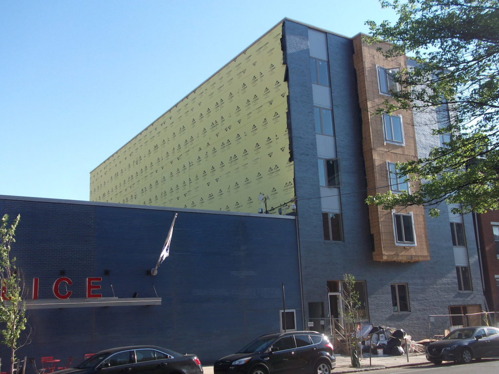 The new building's facade is nearing completion, and we're guessing that the interior will be ready in time for the fall semester. When you consider the length of this new building, it's not hard to see why developers sought out this lot for demolition and redevelopment. As we noted in the previous post, the new residential building will contain 25 units and parking in the basement of the building. It's being developed by University Realty, the same developer behind the massive new building at 46th & Walnut, along with a number of other projects in West Philadelphia.