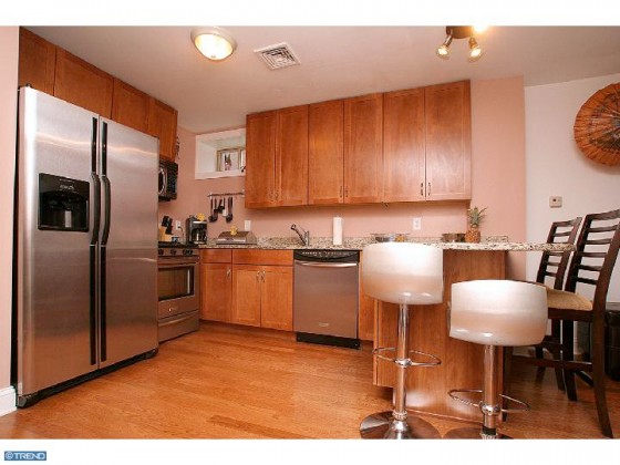This 5-year-old townhouse-style condo is situated around the corner from Clark Park, Green Line Cafe and the 34 trolley on a lovely block in West Philadelphia. The condo features hardwood floors throughout, floor-to-ceiling windows and an open floor plan, and the kitchen has stainless appliances and granite breakfast bar. On the same floor, there is a bedroom, laundry area, and a full bath with a marble-tiled shower. Upstairs there is a large, light-flooded master bedroom with walk-in closet and a smaller bedroom that would be a perfect home office. The rooms are connected by a large bathroom with whirlpool tub, granite vanity and linen closet. There are five years left on the tax abatement, and the home is in the Penn Alexander School catchment. The property is listed at $365,000 and comes courtesy of Coldwell Banker Preferred.