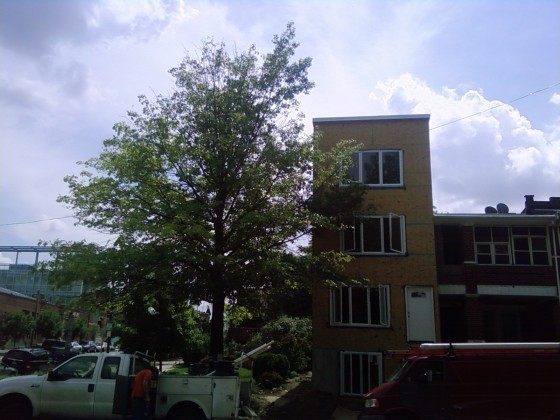 Plumbers were working on the site at 1256 S. 45th St. as we checked it out last week, and electric work has also begun. According to the permit, issued April 4, the 4,000 (!) sqft structure is slated to be a two-family dwelling with a cellar when work is completed by general contractor JMC Realty, a local group.