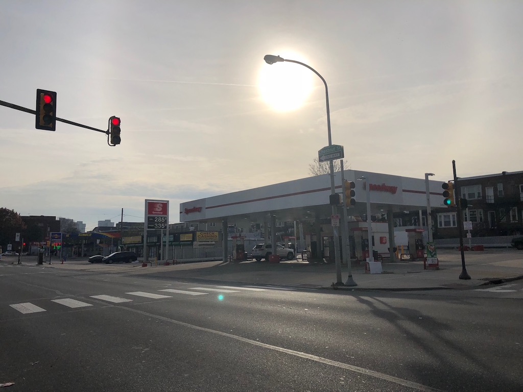 As we considered the wonderfully intact row of twins on the 4700 block of Chestnut as well as the new building that won’t match its neighbors, we looked around and started wondering about just how much the area has changed over the years. Looking at some historic maps, we see that there’s always been large-scale commercial uses on the north side of the 4600 and 4700 blocks of Chestnut and parts of the south side of the 4600 block as well. The gas station right across the street was previously a row of apartment buildings though, leading us to wonder how they might have looked… maybe like the twins across the street?