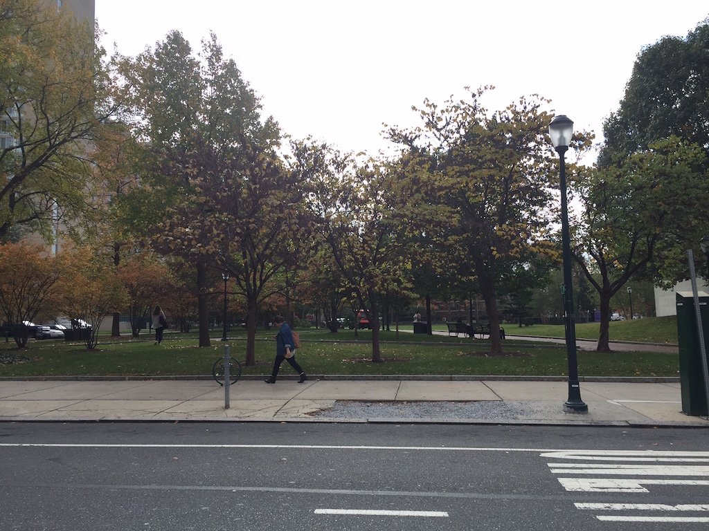 The University of Pennsylvania wants to increase its dormitory offerings, and a green space at the edge of campus will fall victim to this aspiration. The southeast corner of 40th & Walnut is home to a branch of the Free Library, and a field wraps around the building with frontage on Walnut and Locust Streets. This field definitely gets some use, at least according to some commenters on a Daily Pennsylvanian story, but it seems that students will soon need to find a new spot to toss a football and/or frisbee.