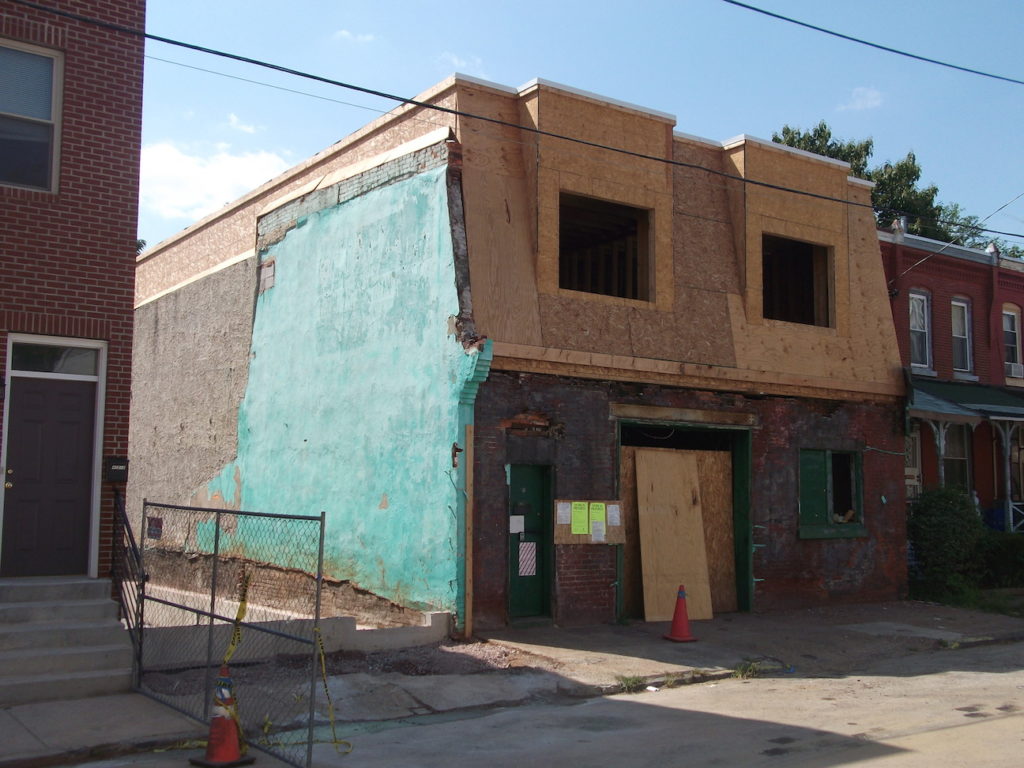 Further south down the street, we caught view of two adjacent properties undergoing different development situations. At 414 N. Wiota, a freshly poured ground floor signifies what will be a new 3-story home, oddly without a basement. Immediately to the north, a 2-story building is being converted into three apartments. Both of these projects are under the same ownership and are being designed by the same company, Group G.