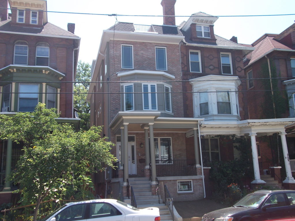 On the stately streets of the Spruce Hill and Walnut Hill sections of West Philadelphia, some new construction projects show various development approaches. Last fall, we posted about 245 S. 45th St., which was undergoing demolition after years of vacancy. The property, which is owned by Glasberg Properties, is now slated for 15 rental units and will look significantly different from the residential block surrounding it. As you can see, the lot is double the width of typical building on that street.