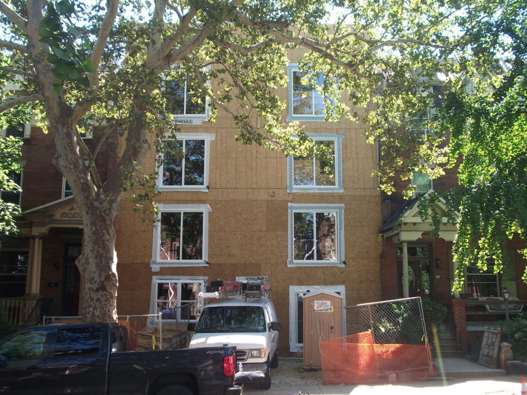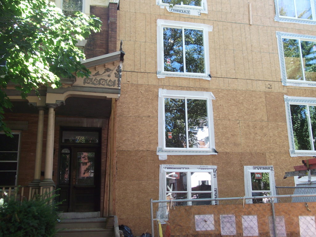 One interesting architectural problem for these developers is on the left side of the building, where there is half of a vaulted porch roof on the neighboring building. The new building, which is in-line with the others on the block with the same setback, should address the neighboring porch, perhaps with a half-vault of its own. But that's not reflected in the drawing. Each of the building's front units will have their own little porch area, but the building won't have a typical West Philly porch like its neighbors. It should be interesting to see how the new building will fit into its surroundings once the facade goes up.