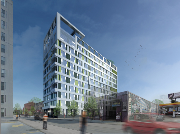 Luckily, we were able to talk to the contractors on-site and snap a shot of the basic drawings for the building. We were told that their office may have a more detailed visual on what to expect but we're still waiting for them to send something our way.