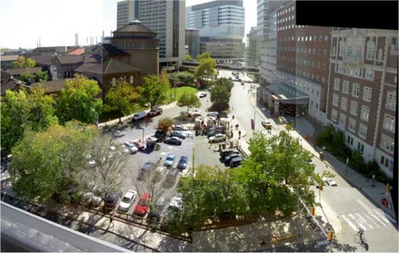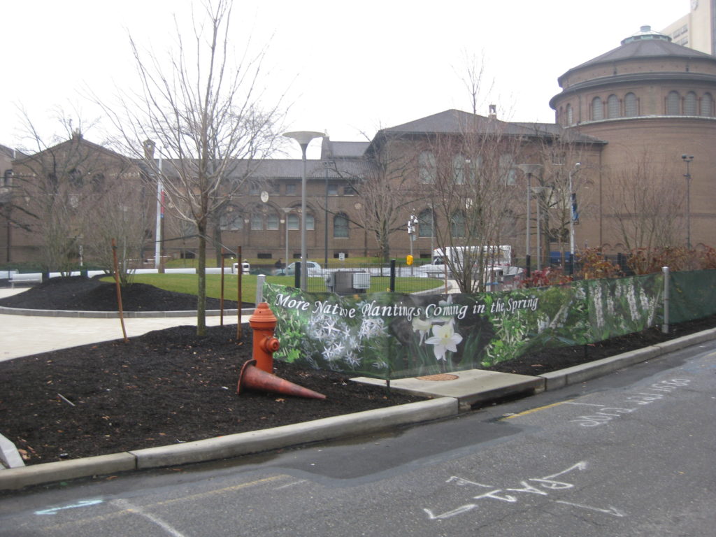 Back in September, we told you about plans to convert Lot #8, an unattractive parking lot at HUP’s front door, into a landscaped public green space. Earlier this month, the fences came down, and the Spruce Street Plaza opened its “doors” to the public at last.