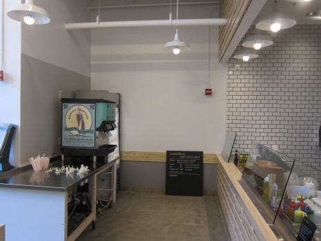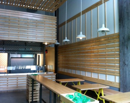 Back in February we reported the opening of Sweetgreen, and this gorgeous and mild Philadelphia winter must have just helped time just fly by; Sweetgreen officially opens today at 3925 Walnut Street as an addition to the Radian. “Our newest location in Philadelphia reminds us of the first Sweetgreen we ever opened when we were seniors at Georgetown,” said Nathaniel Ru, co-founder of Sweetgreen. “We have grown quickly, but seven locations later, Sweetgreen retains the same charm and no location will capture it better than the UPenn location.” Sweetgreen is committed to sustainability and will use alternative energy to power this location and will source local and organic ingredients, partnering with Fair Food Philadelphia to supply farm-fresh ingredients at the UPenn location (a special list on display at Sweetgreen shows what is local and in season). For ingredients that cannot be sourced within 100 miles, Sweetgreen tells us they have a relationship with Stonyfield Farm and Honest Tea to bring in fresh food year-round. The interior wood detailing and furniture at 3925 Walnut was crafted by Staach, whose pieces have been featured in New York Magazine and The New York Times.