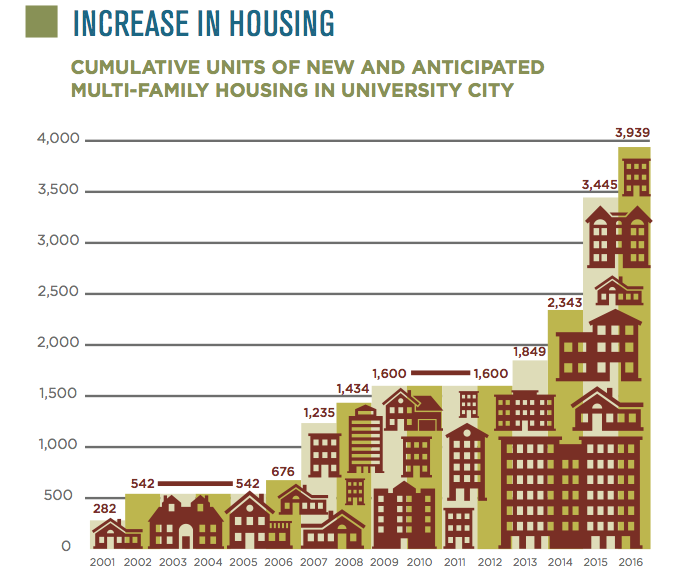 “I think the biggest story has to be the scale of the new residential construction here,” said Seth Budick of UCD, “which will really change the face of 'downtown University City' creating an even more vibrant core, and which is a response to the ongoing growth in employment and university enrollment, and the desire for close proximity between work and home.”