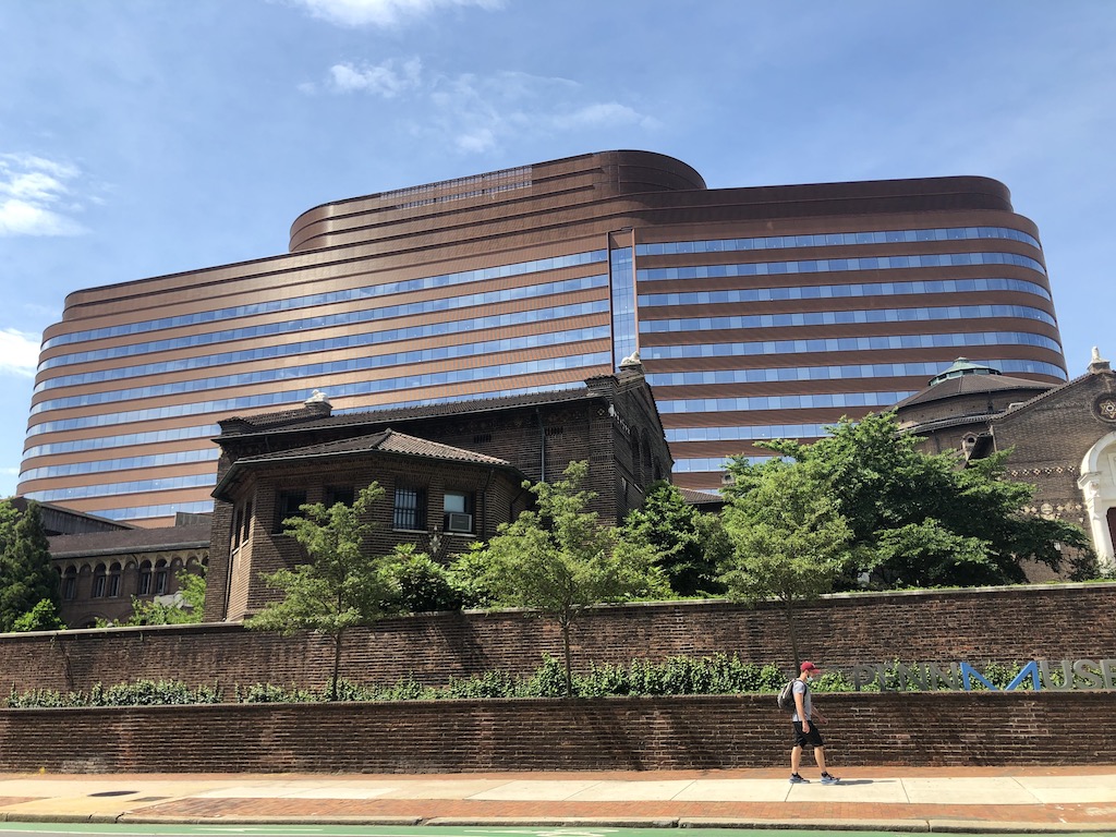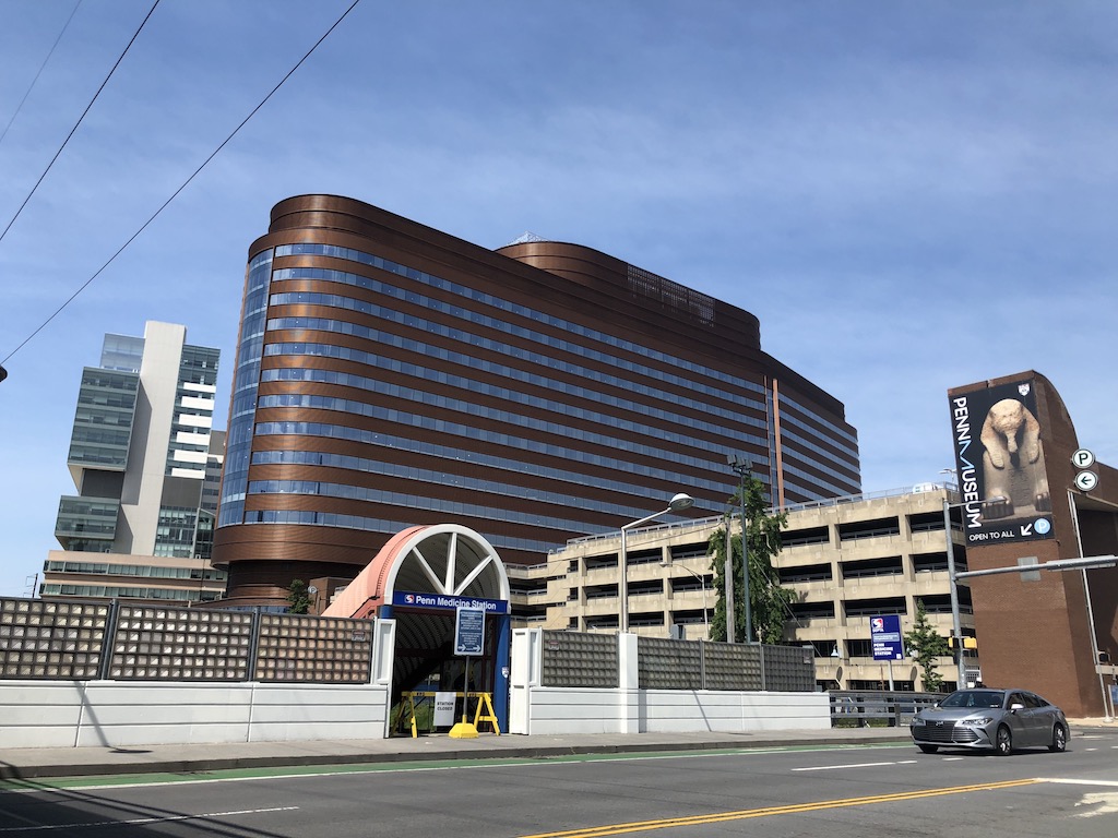 Penn Medicine’s latest foray into expanding its capacity is coming in the form of a new building, called The Pavilion. This edifice has appeared where 33rd Street meets Convention Avenue, on a parcel where Penn Tower once stood. As we explained once before, that building was constructed in the 1970s as a Hilton hotel, but slowly turned into a HUP office building. Penn Tower was a fixture on the West Philly skyline for 40 years, screaming “I was built in the 70s!” all the while. We were not sad when it was torn down in 2016.