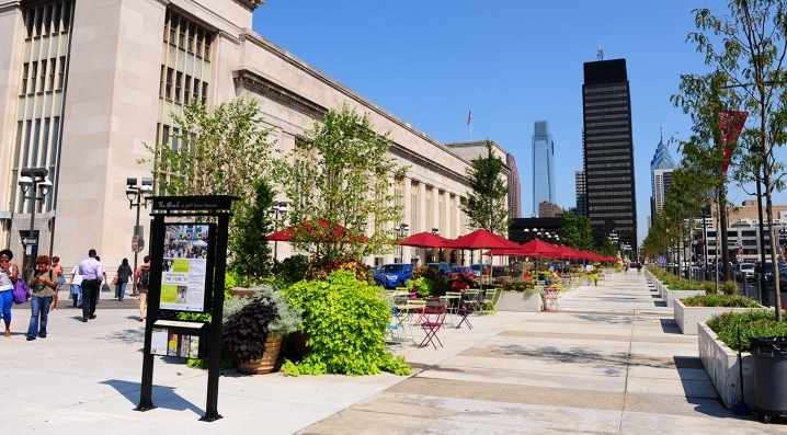 Back in the dark ages (2011), the area now known as The Porch at 30th Street Station was 34 parallel parking spaces. It was a chance for Philadelphia’s finest drivers to display their parking prowess. Now, the half-acre strip of land located along the Market Street side of the nation’s third busiest train station has been repurposed into a public space that can turn a lunch hour into a beer garden, a street performance, or a WXPN event.