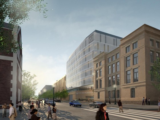 Last Fall, we told you about the planned expansion at the Wistar Institute, in the heart of Penn‘s West Philly campus. Over the last six months, a large building in the middle of their Spruce Street complex has been razed, paving the way for the new building, designed by Ballinger.