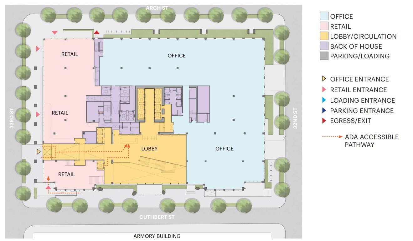 It’s no secret that the life sciences industry in Philadelphia is absolutely exploding. In addition to the continued stream of venture capital money flooding into the region like never before, the investment into manufacturing and lab space for cutting-edge therapies is leading to a boom for real estate development, with University City at the center of the action. Today we’re checking in on a development that we covered earlier this year. The site at 3201 Cuthbert St. (or alternatively 3200 Arch St.) is currently home to Buckley Field at the eastern edge of Drexel’s campus. While we were aware that a lab was planned to rise here, we are happy to share some more information thanks to a Civic Design Review submission. Let’s revisit the site.