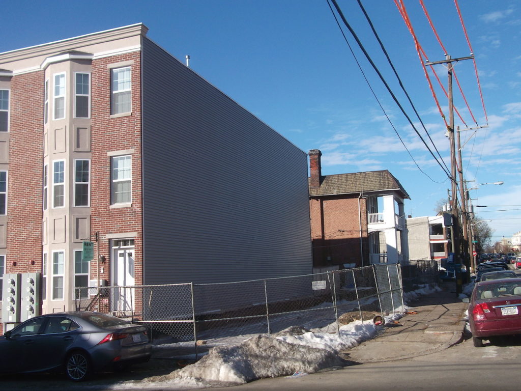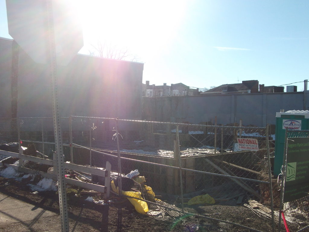 128 S. 46th St. is the last lot next to the prefabricated housing that we mentioned was completed last year. At the time we wrote that post, we were really hoping that the end lot would hurry up and get built to cover up the ugly party wall that the prefab houses left. We assumed that it was owned by the same people. It's actually set to be part of this new development. As you can see in the picture, the foundations are currently being poured, despite this inhospitable weather for such a task.