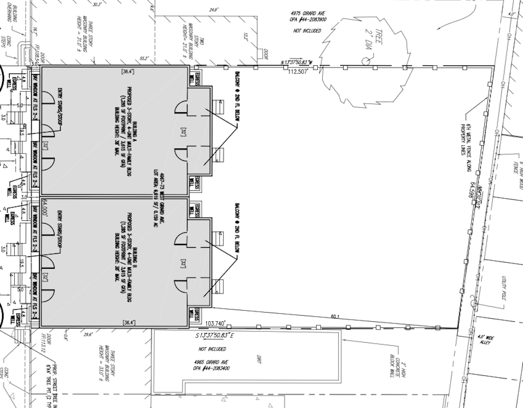 Even without the City helping to make the project more efficient, we wish that this project was taking a more aggressive approach in terms of density. The apartment building could maintain its current footprint and add a floor, only needing to use a zoning bonus for low income housing to avoid a variance. In addition, the project includes rear yards that are outlandishly large. At 4967 W. Girard Ave., for example, the project calls for over 60% open area in the back. The standard in the city is more like 20%. While these are unusually deep lots, we still contend that the development team could have gone with something skinnier and deeper, utilizing more of the lots and increasing the density.
