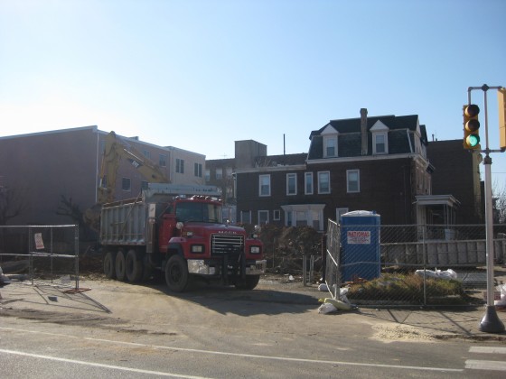 They’ll be building five triplexes on this lot, which we can only imagine are planned as rentals. Could they be student housing for Drexel students who don’t mind walking an extra few blocks? Or simply apartments for people who are looking for inexpensive new construction apartment rentals? We’re guessing the former.