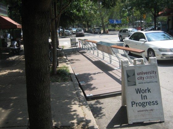 On Thursday, Aug. 4th at 1pm, University City District and the Mayor’s Office of Transportation and Utilities (MOTU) will officially unveil Philadelphia’s First Parklet, on 43rd St. just above Baltimore Ave. Parklets, fairly common in Europe and growing in popularity in San Francisco and New York, are small public spaces adjacent to the sidewalk that typically repurpose parking spaces for pedestrian use.