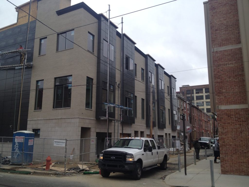 Six homes have risen at the northeast corner of 12th & Brandywine, with one home on 12th Street and the rest stretching down Brandywine. We last visited this project a few months back, when the Brandywine homes were just getting framed out. A year ago, this corner was an overgrown vacant lot. Purchased in September for $675K by DSB Holding Company, such a high price for an undeveloped lot shows the rising value of the neighborhood and the horizon of potential investment developers see here.