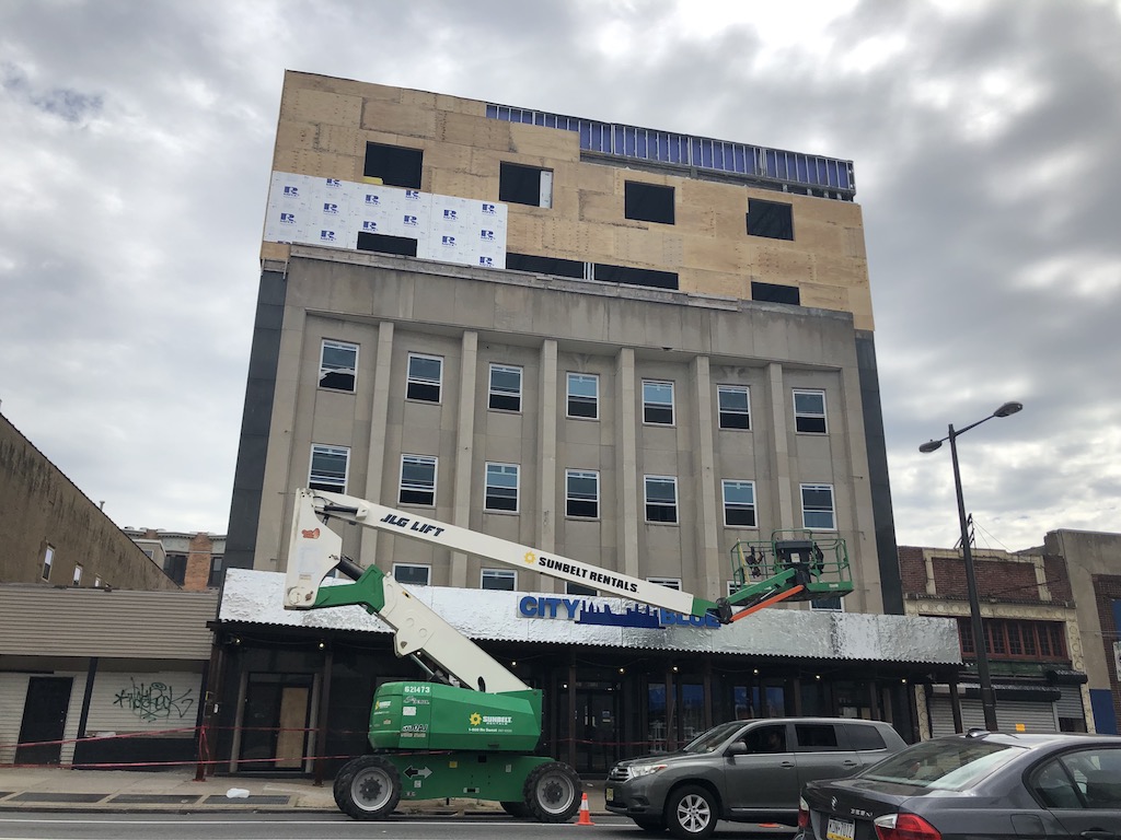 It was just a few months ago that we directed your attention to a renovation project taking place at 925 N. Broad St., a property most commonly associated with the City Blue location on its first floor. The upper floors of this building have sat vacant for several years, an illustration of the underwhelming real estate performance on this stretch of North Broad over the last several decades. But it’s already old news that this part of North Broad is seeing considerably more action of late, with the renovation of the Divine Lorraine to the south and the reopening of the Met just across the street. So it wasn’t such a surprise when we discovered this building was picking up a couple new stories and turning into an apartment building. Needless to say, there’s been some decent progress over the summer.