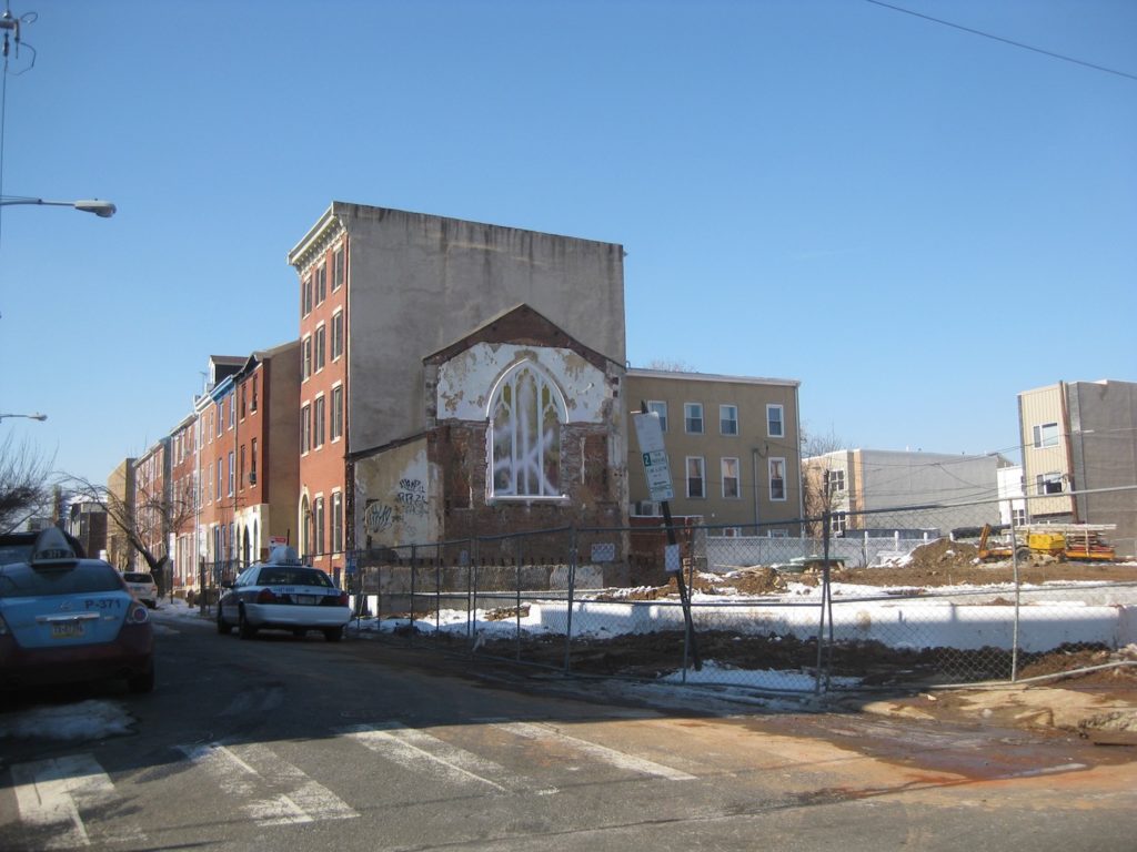 It was over two years ago that we first told you that the Ruffin Nichols Memorial African Methodist Episcopal Church and school at 11th & Mount Vernon were under contract with a developer. As the months went on, we tracked the demolition of these lovely buildings with a twinge of disappointment, wishing that the new owners could have come up with a way to save and reuse the attractive buildings. The demolition took a very long time and experienced extended pauses until the buildings were finally gone this past November.