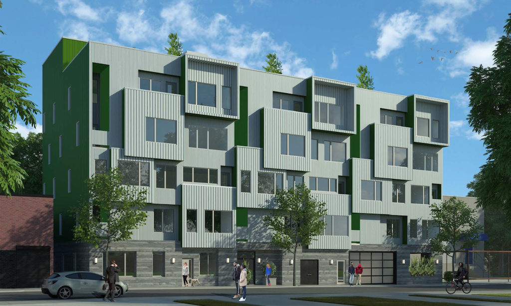 Tomorrow, developers will present a by-right project at CDR for this parcel which calls for a six-story building with 46 apartments and 15 parking spots on the first floor. KJO Architecture did the design work, and let’s just say the building will not exactly blend in with its surroundings. Check out these renderings: