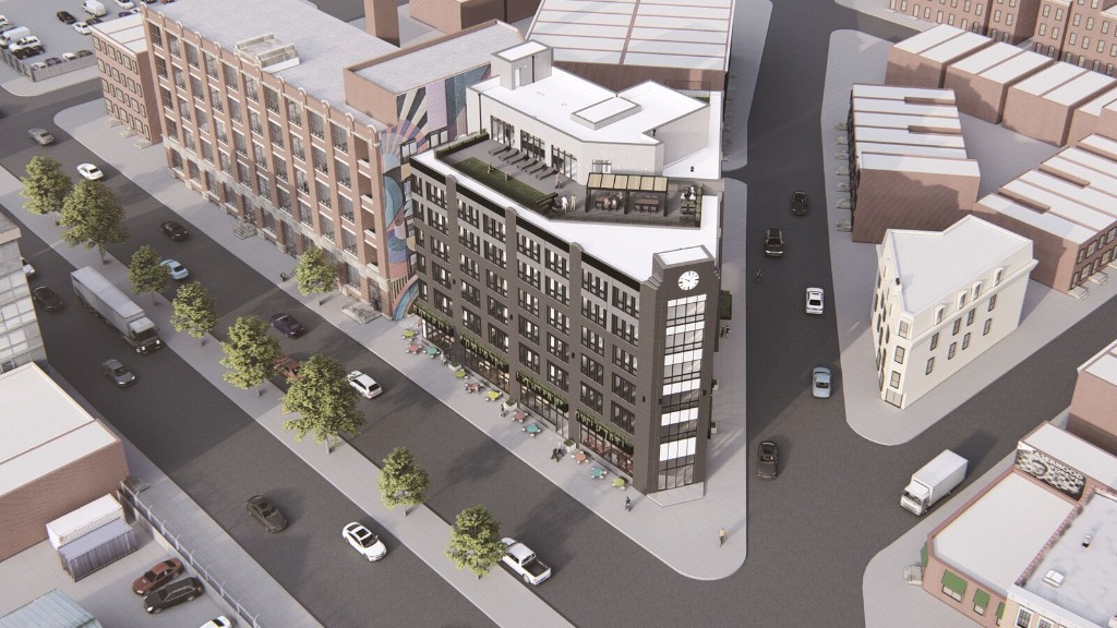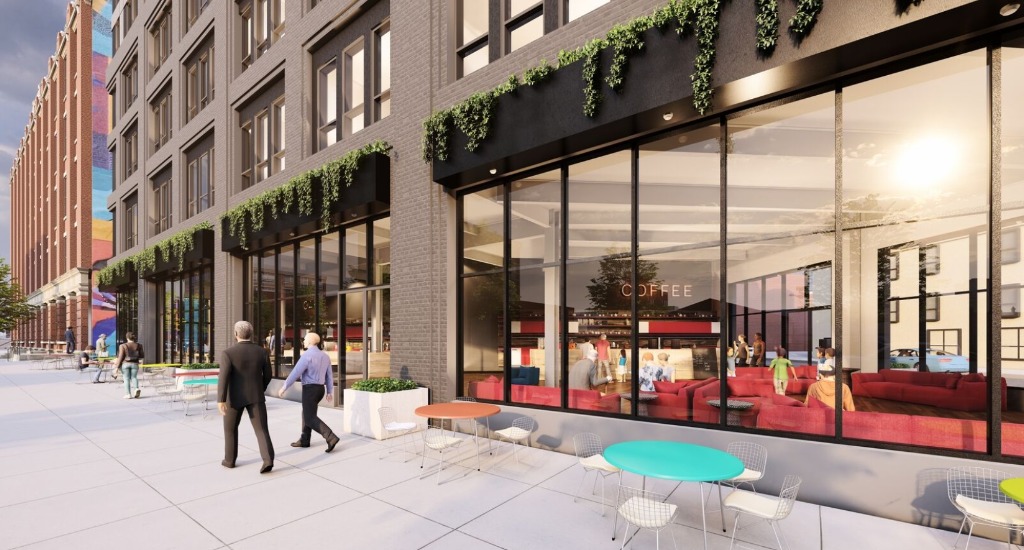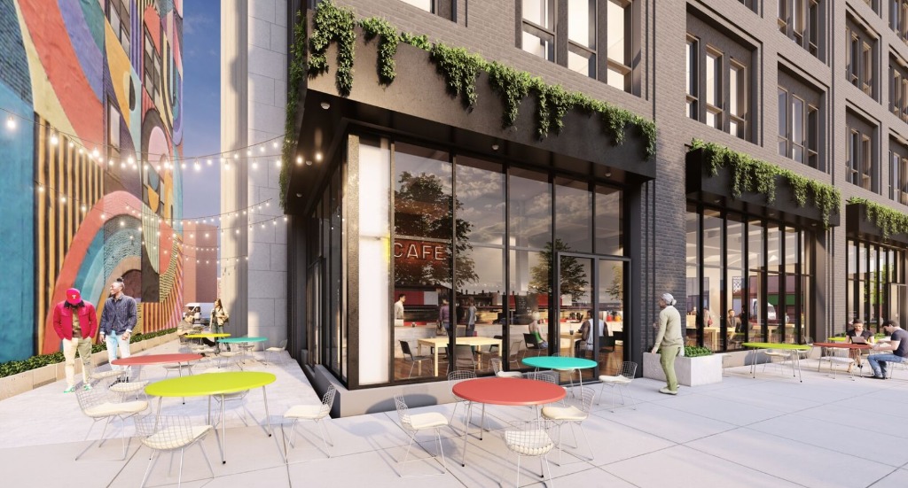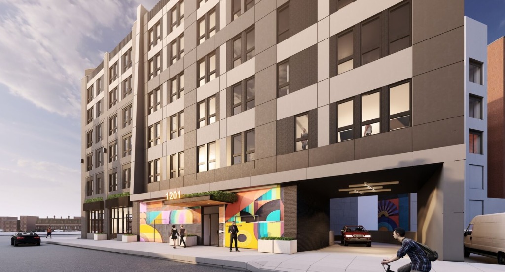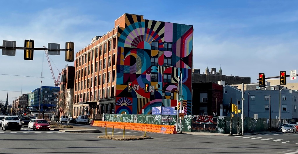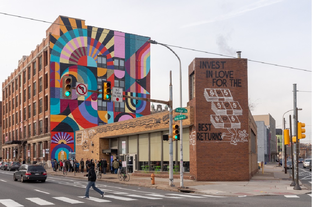 A recurring theme we’ve noticed with some recent proposals is the loss of public art and that’s the case here too, at least in part. The old bank was the canvas for a mural by Steve “ESPO” Powers, one of our favorite Philly-born and raised artists, whose works are all around the city. We are happy to report that “Folding the Prism,” the gorgeous mural on the adjacent building by artists Jessie Unterhalter and Katey Truhn, will remain visible even with the construction of the new building. Arts + Crafts owns the building next door too, so we’ll be graced with a walking path that will save the art. Oh, and another mural will frame the residential entrance on Ridge Ave., adding even more vibrancy to this rapidly evolving area.