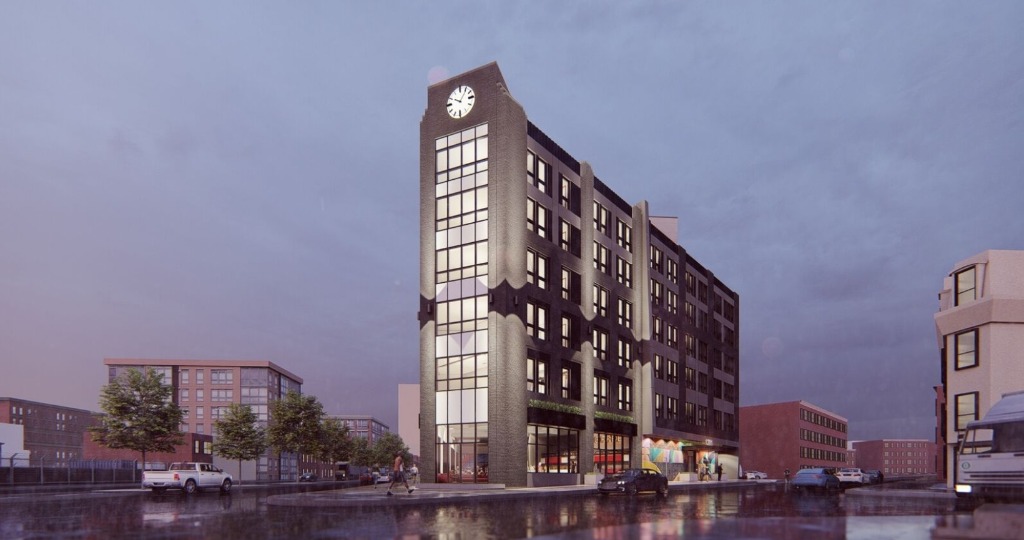 In place of the bank, look for a seven story, mixed-use building designed by CosciaMoos to rise on the triangular parcel. Gray brick and dark window casings will provide some modern flair, while the massing and window placement will provide a more traditional complement to the existing architecture of the neighborhood. The most striking feature is surely the neo-art deco clock tower facing east at this sharp intersection, providing a rather grand entrance to the Ridge Ave. corridor. We wonder, was there a clock at the corner of the 1950s-era bank building that was removed at some point before Citizens Bank took over the space which is now being referenced by the clock in the new building?