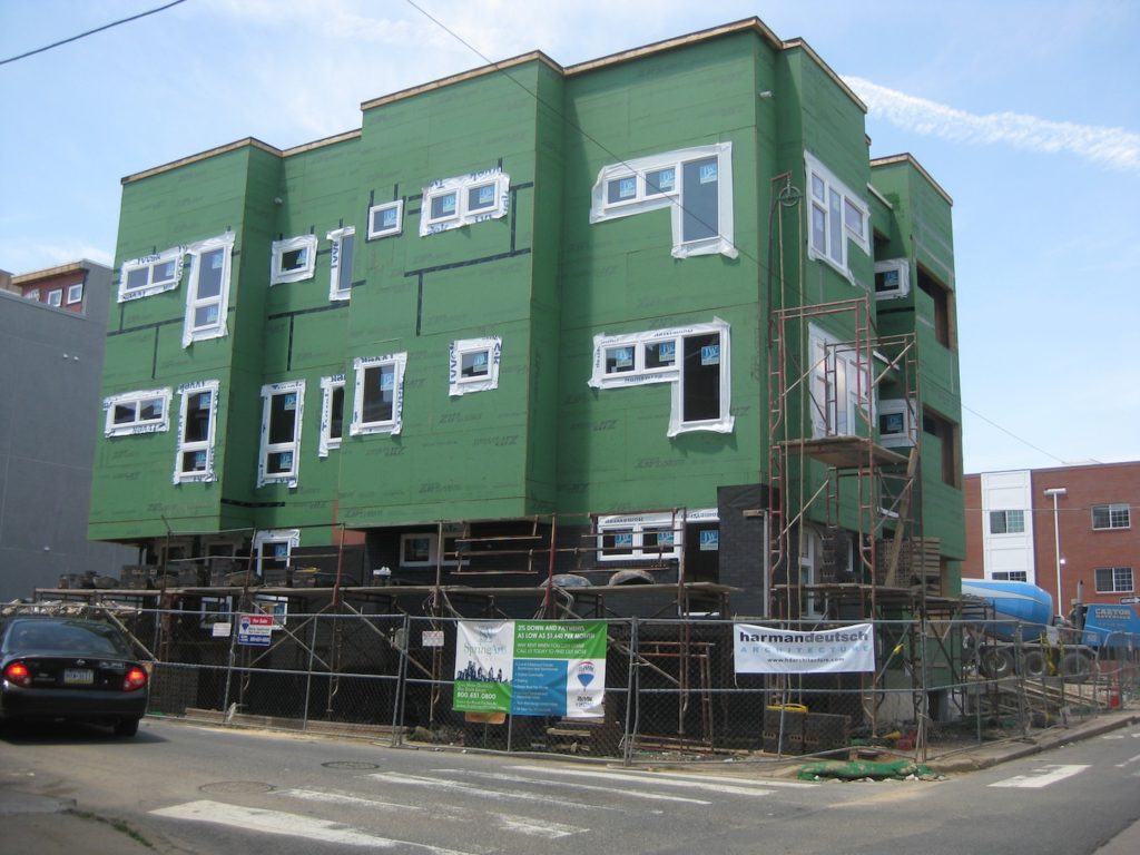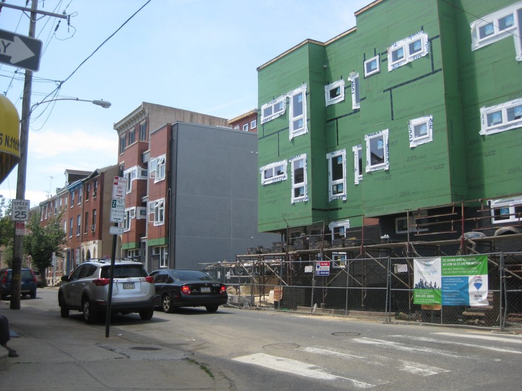 When we passed by the other day, we saw some encouraging progress at the site. The two homes on Mount Vernon and the two duplexes at the corner of 11th & Mount Vernon are moving along well. The project, according to a sign on the site, is now being called Spring Arts Square and is being promoted as a gated community. Okay then. The homes are listed at a price of $459K, and the condos start at $339K.