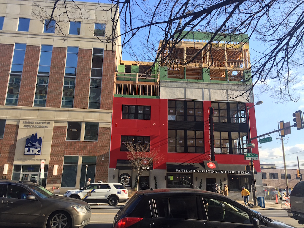 Meanwhile, just up the street, the renovation of the Studebaker building at 667 N. Broad St. looks like it’s finished, at least on the outside. Remember, this building had been used as the Ridge Avenue men’s shelter for a long time, though as the name suggests it was originally used by the company that made Fozzie Bear’s favorite vehicle. While we’re certainly more enamored with this renovation than with the addition at Santucci’s, we still feel like it’s a little lacking when considered alongside the artist’s rendering we saw previously.