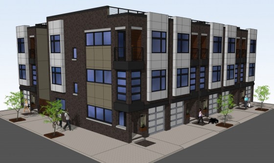 A year and a half ago, we told you that the homes were designed by KJO Architecture, and included over 3,000 sqft of interior space, 3 bedrooms, 2.5 bathrooms, roof decks, and garage parking. The price being thrown around back then was $375K. Here's a rendering of the project: