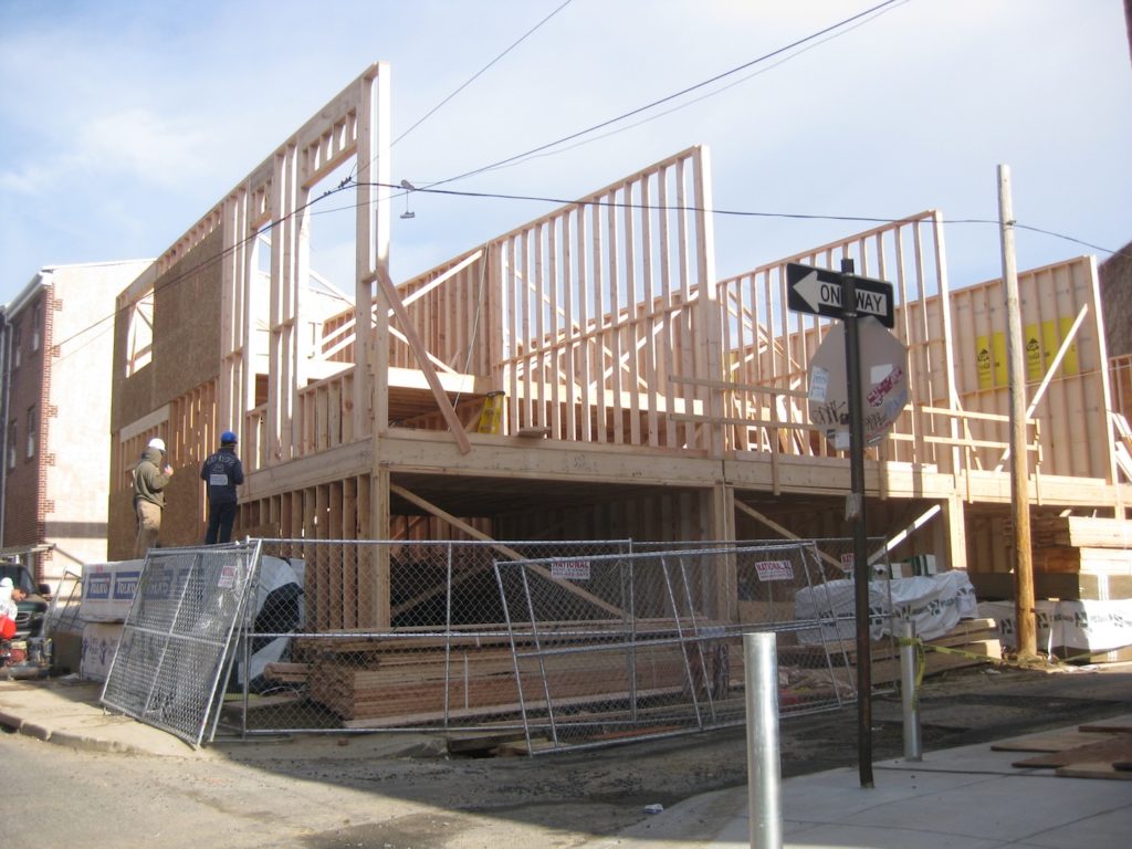 You can see another construction fence in the bottom left corner of the image above. That, of course, goes with another project across the street that recently got in the ground. It was almost two years ago that we first told you of plans for six new homes on the northeast corner of 12th & Brandywine, and it's been about a year and a half since the project got the necessary zoning variances. Finally, the homes are getting framed out.
