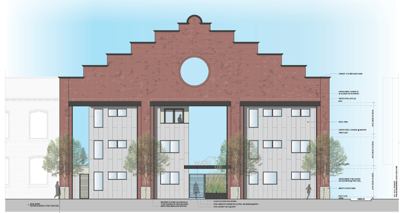 Once this project is finished, it will add dozens of additional residents to a neighborhood that's seen its share of redevelopment over the last few years. Additionally, the project will include twenty parking spots and ten bike parking spots. Unlike most of the development in this part of town, the project will leave an architectural impression that goes beyond heartburn. And it's not just a matter of a good looking building coming back to life; it's also the design elements. As we told you previously, the apartments will be laid out across four buildings, with access coming via a walkway in the middle of the building that will be open to the sky. This means that the units will get plenty of light and air, which you might not necessarily expect.