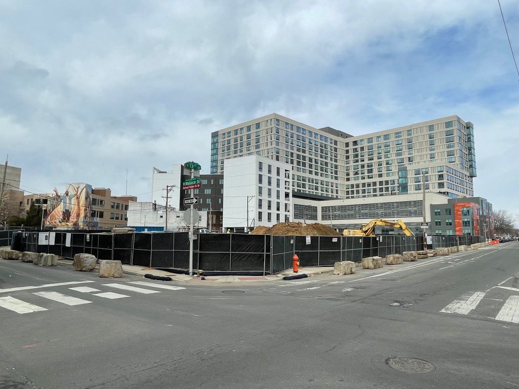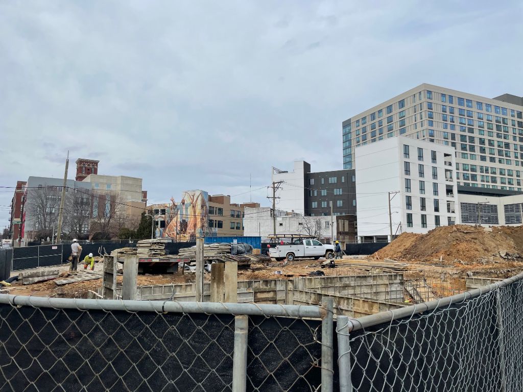 These homes are going to be huge, with 21-foot lot widths, roof decks, two car parking and a drive aisle accessed via Melon Street. When we stopped by to check on progress, we could see that things were indeed well underway. Multiple foundations along 13th Street have started and the shots below show you the size of the site.