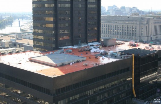 The eight floor addition to the front of the building appears to be nearing completion. PMC Property Group, the owners