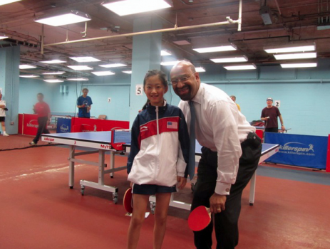 Mayor Nutter picked up a paddle for The Trolley Car Table Tennis Club's grand opening in East Falls and challenged eight-year-old Amy Wang to a match (Wang is the 2010 US Open champion for Table Tennis for girls nine and under). The Tennis Club, founded by Trolley Car Cafe and
