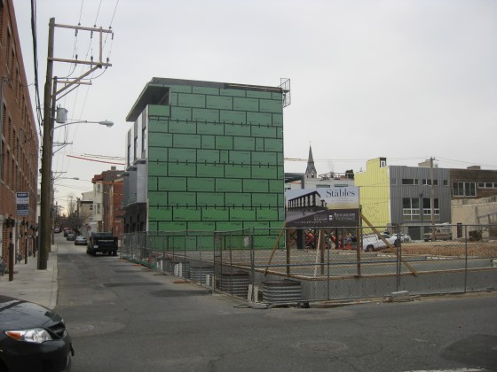 Last week, we briefly mentioned progress on the Stable Flats project, across the street from a garage that will soon turn into a salon. We first mentioned this project last spring, and and in that time it's progressed from foundations to the assembly of three modular units, and the name