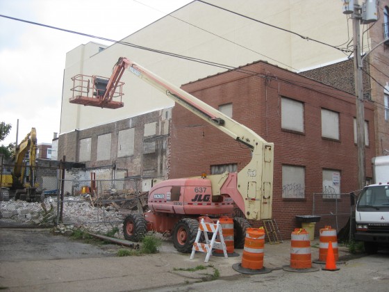 The other day, we got an email from a reader, inquiring about some demolition activity on the 1300 block of S. Howard St., a little block with views of the rear of the Freda Corporation building on Front Street. We took a jaunt over to scope it out, and we