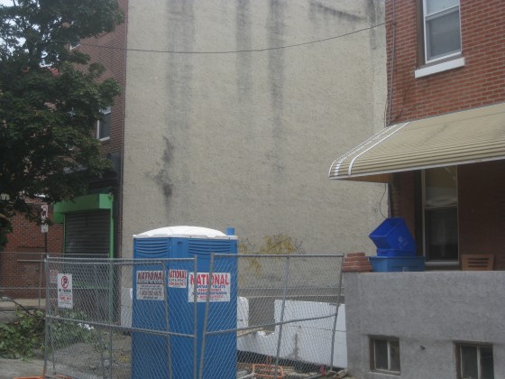 Last week, a reader gave us the heads up that an overgrown vacant lot had been dug up in Pennsport, with two houses on the way. We were in the area yesterday and had a chance to check out 210 Sears St., and discovered preliminary work taking place for two