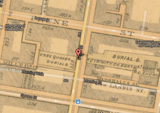 And now, another exciting edition of ‘places where Philadelphians used to be buried.’ Next time you’re chugging along on the elliptical or rocking through your Zumba class at Philadelphia Sports Club on South 5th Street, try not to think about the countless excommunicated Quakers that were once buried there. Just a few blocks