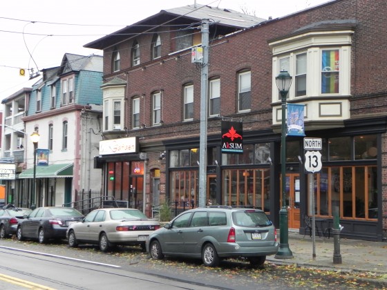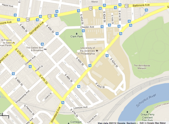 Woodland Avenue is a developing West Philadelphia thoroughfare less mentioned. At the 40th Street Trolley Portal, across the street from Woodland Walk and Penn, the route 11, 13, 34 and 36 trolleys stop, and the road turns southwesterly and passes by Woodlands Cemetery and through the University of the Sciences.