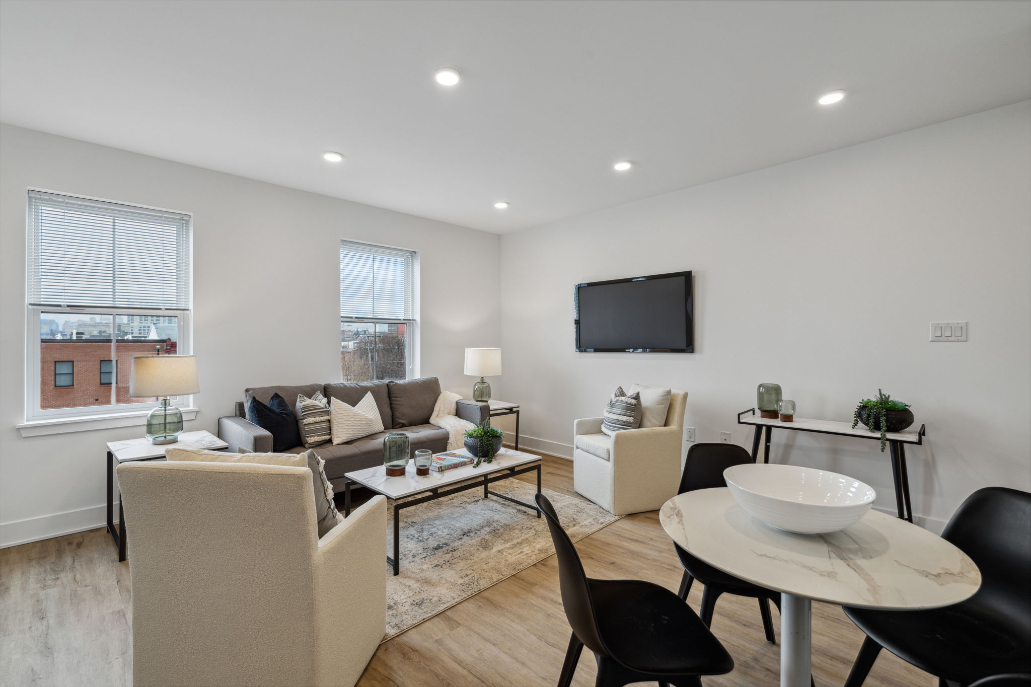 Don’t miss this opportunity to live in this top of the line new construction 166 residence apartment community in Philadelphia’s Yorktown neighborhood. Your peace of mind starts at the front door with our attentive door attendant! This new construction community is situated adjacent to one of Temple University’s Sports Complexes as well as within walking distance to the University itself. Building features include an on-premise parking lot with limited spaces available to rent, a shared roof deck with 360-degree city views, elevator service, trash chutes on each floor, a shared bike room, fitness room, resident lounge, and a mail/package room. This spacious 1 bedroom, 1 bathroom unit comes with laundry, central AC, and contemporary finishes. The kitchen boasts brand new stainless steel appliances including a dishwasher, garbage disposal, microwave, and electric range, plus quartz countertops and plenty of cabinetry. The bedroom is comfortably sized with diffused natural light, while the bathroom is complete with a slate tiled shower/tub, LED mirror, and modern vanity. Surrounded by public transportation options along Broad and Girard for traveling around the city, and in close proximity to bustling neighborhoods like Francisville and Fairmount, where popular shops and restaurants are abundant. See this exciting space for yourself and book your tour today!