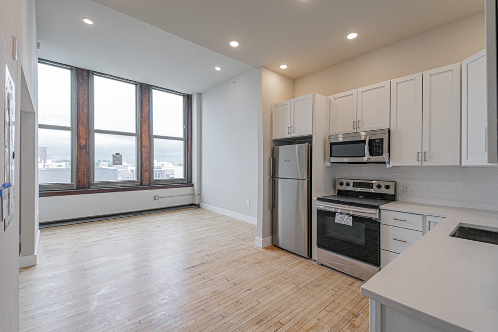 Don’t miss the chance to live in this junior 1 bedroom, 1 bathroom apartment in the newly renovated Smith School! As you walk into this unit, you’ll notice the unique layout. First, the massive bathroom features a large vanity with quartz counter top and tub/shower with a sliding glass door. Continuing through the original door frame into the unit is the washer/dryer, large coat closet, and then opens up into the breathtaking kitchen and living room featuring beautifully bright floor to ceiling windows. The kitchen has quartz counter tops, white cabinets against subway tile back splash, a garbage disposal and stainless steel appliances. The loft-style bedroom has a wide open doorway and a large double closet. You will enjoy hardwood floors, mini split system heating/cooling, recessed lighting and incredibly high ceilings.