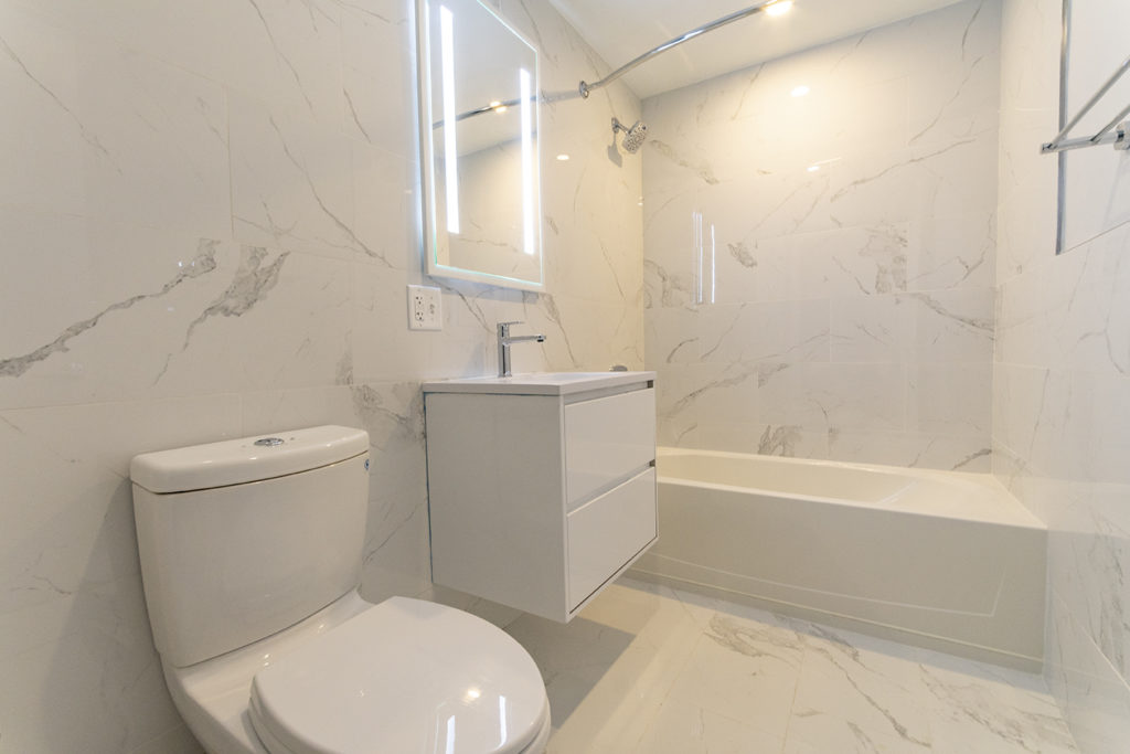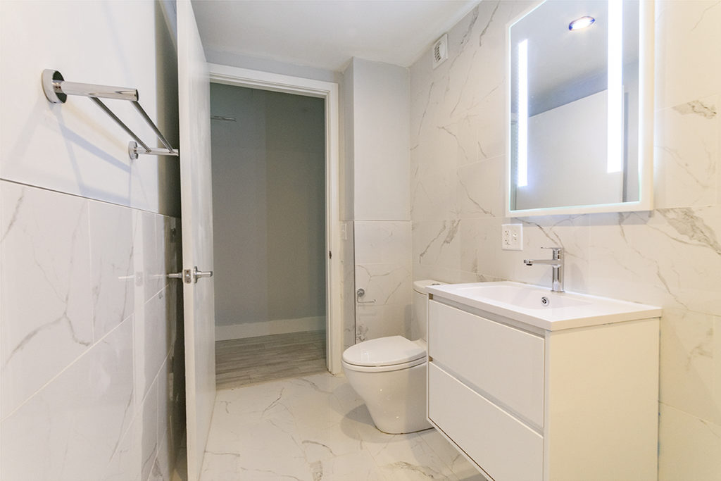 Don’t miss this fully modern 1 bedroom, 1 bathroom in the Keppoch house building, complete with central air, washer/dryer in unit, and nest thermostat. The apartment is a beautiful mix between industrial and modern with concrete floors throughout, high ceilings with exposed air ducts, tall windows, and white painted exposed brick. The kitchen includes sleek black and white cabinetry, stainless steel dishwasher, microwave, refrigerator and electric stove/oven. Off of the kitchen you have a small private balcony where you can spend your morning sipping coffee while admiring the beautiful views of the Philadelphia skyline. The bedroom has ample closet space and a window that lets in the natural sunlight from the living room. Finally, the bathroom is finished with all white marble, eco friendly toilet, and bright mirror vanity lighting.