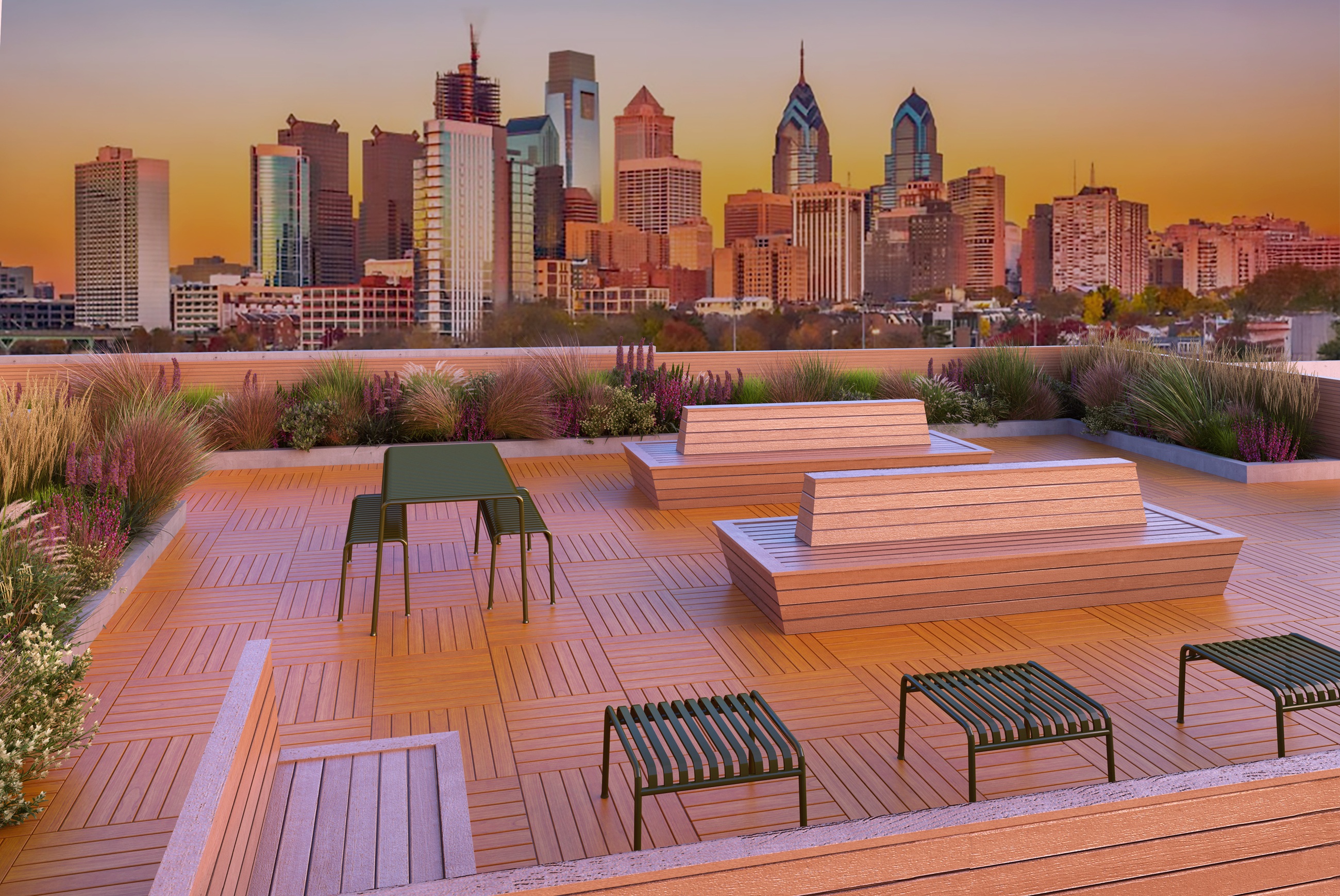 Expansive Communal Roofdeck with 360° Views of the Philadelphia Skyline